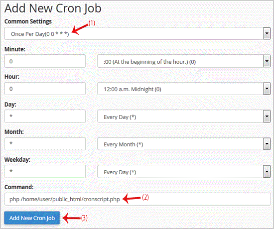 3. Under "Add New Cron Job", "Common Settings" and select an appropriate option such as "Once Per Day" or another suitable option.