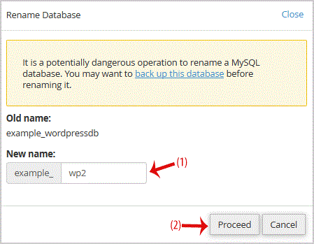 Change database name and then click on "Proceed"