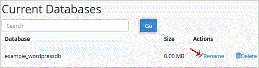 3. Under "Current Databases", You can see list of your all databases. Locate the Database and then click on "Rename" Icon.
