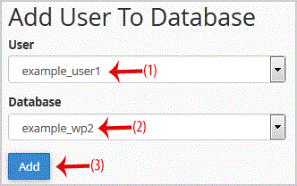 3. Scroll down to the end of the page and under "Add User to Database", select a user from the list, and then choose a Database from the list.