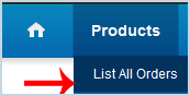 2. After a successful login, click on "List All Order" from the "Products" drop-down