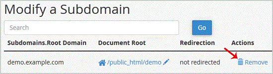 3. Under the "Modify a Subdomain" list you can see a list of subdomains.