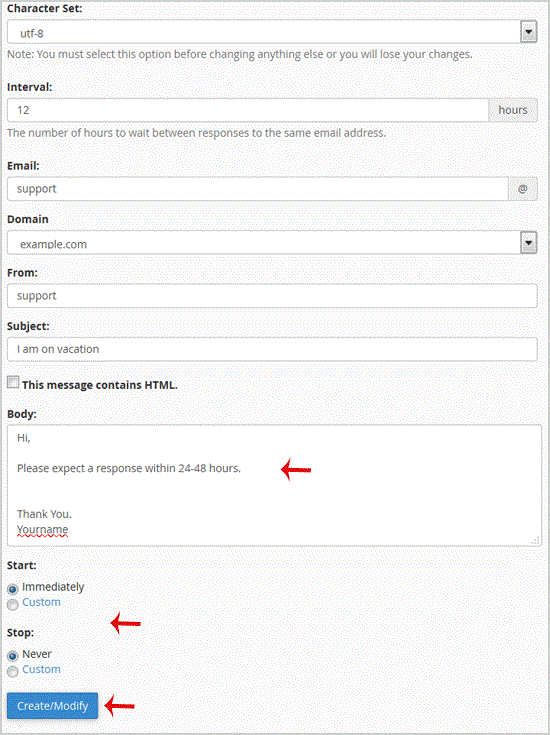 In the Interval field, specify the number of hours you wish the autoresponder to wait between responses to the same e-mail address.
