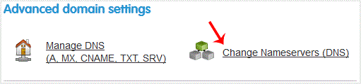 Scroll down to the "Advanced domain settings" and then click on "Change Nameservers (DNS)".