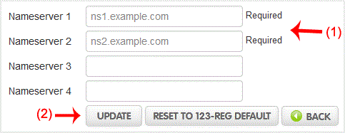 5. Enter your Nameserver in field 1 and field 2 and then "Update"