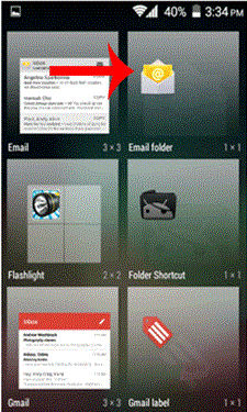 2. Swipe until you find the "Email Folder" and then tap on it for a few seconds. Then drag it to your Android screen.